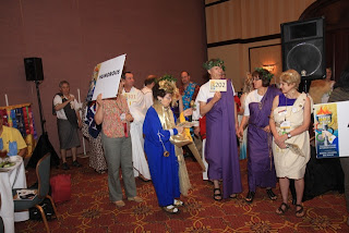 What happened at the District Conference, or at the Sheraton, will long be remembered, but doesn’t the saying go, What happens at the Sheraton, stays at the Sheraton? An exception to the rule has got to be the Toga Contest. For those of you not attending, I would start looking for evidence — I mean pictures — that tell the story. Some of the exhibitors — I mean contestants — in the Toga Contest were definitely interesting, to say the least.