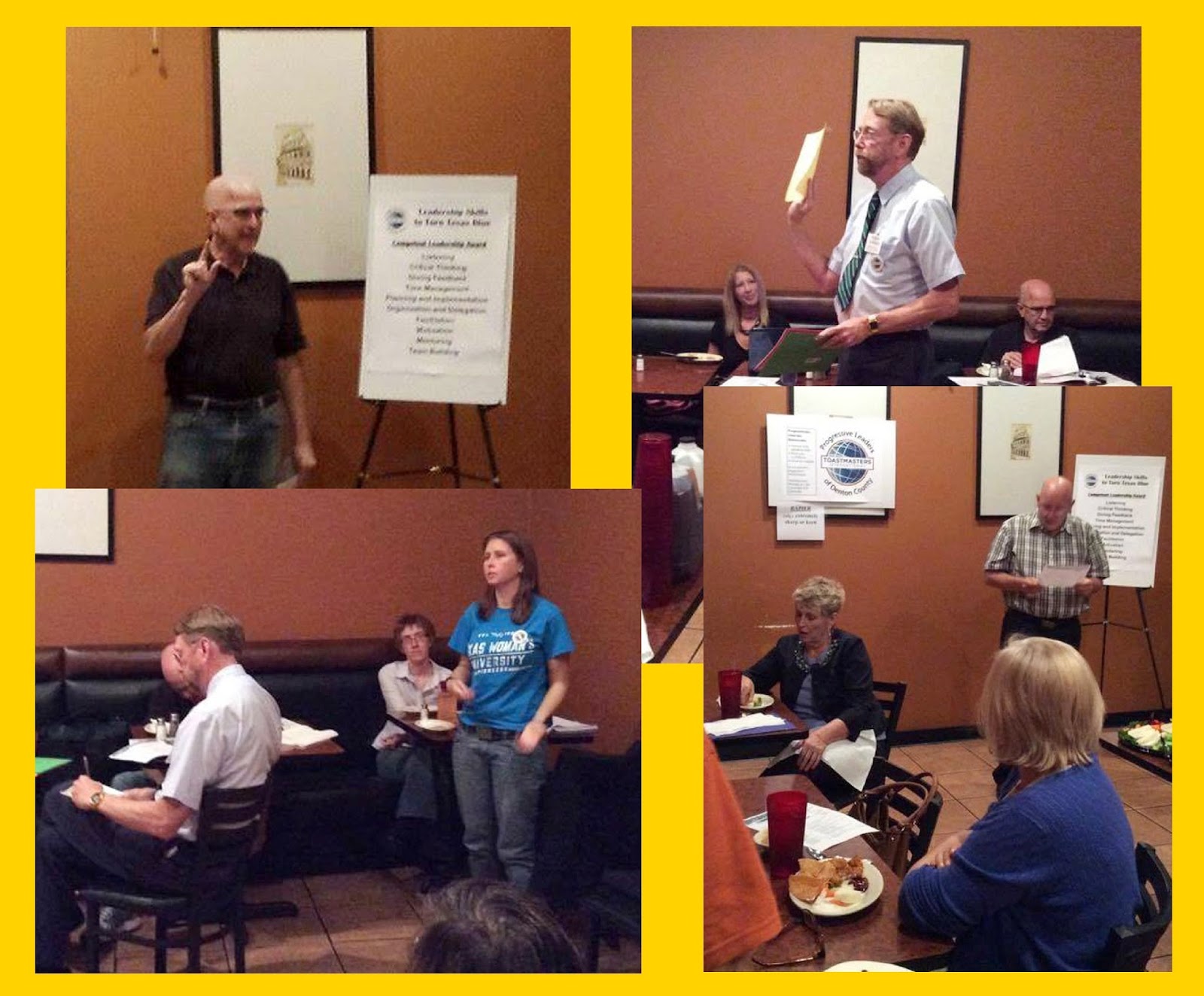 The Progressive Leaders of Denton County Toastmasters Club Open House was held on Sept. 29, 2014 at the Landmark Grill in Lewisville. The Open House also coincided with the One Year Anniversary of the club.