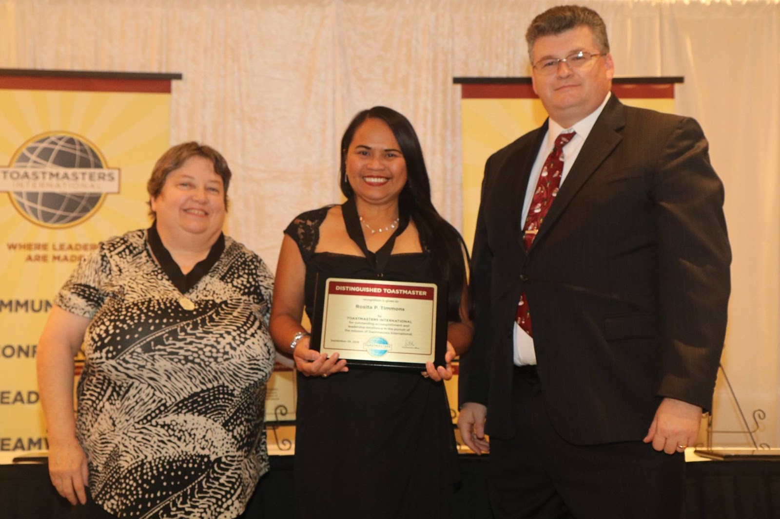 | Left To Right: District Director Jodie Sanders DTM, DTM Recipient Rose Timmons, Fall Conference DTM Ceremony Chair Les Condit |